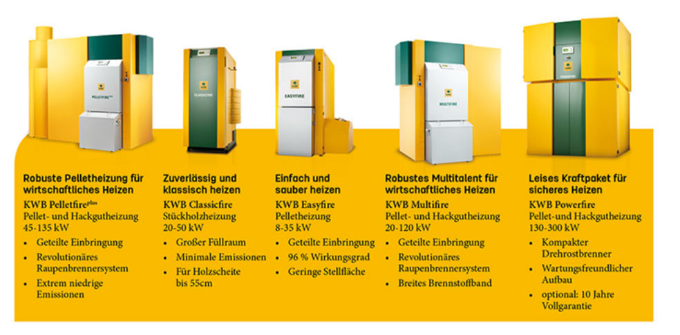 Die Marke KWB gilt als der Marktführer im Bereich Pelletheizungen bis 50 kW und als österreichischer Hersteller entwickelte das steirische Unternehmen die ersten vollautomatischen Holzheizungen überhaupt. Im hauseigenen KWB Innovationszentrum, dem größten privaten Biomasseforschungszentrum Europas, entstand 2011 die KWB Easyfire Pelletheizung. Die Montage, der Betrieb und die Bedienung sind so einfach und sauber, dass seit 2012 etwa jede fünfte neue Pelletheizung bis 50 kW das KWB-Logo trägt.